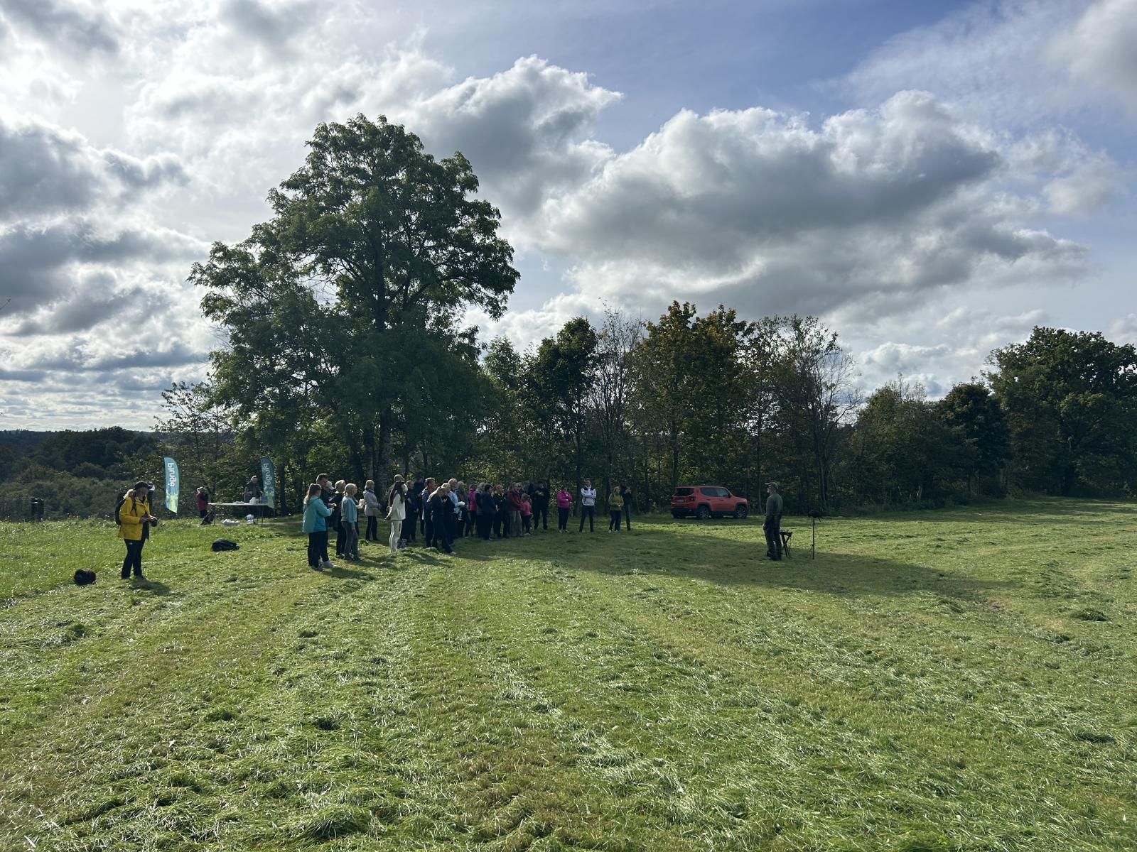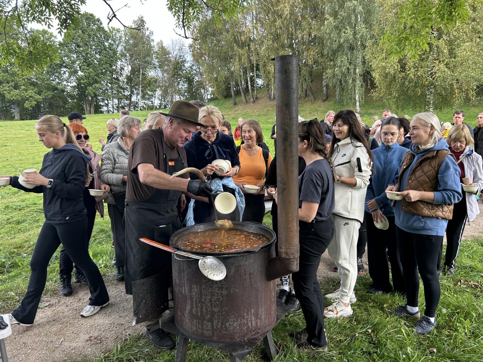 Toliau apie 10 kilometrų maršrutas vedė iki Gandingos piliakalnio. Čia žygeivius pasitiko sakalininkystės tradicijų žinovas Virginijus Narkus, kuris papasakojo apie šio amato istoriją ir šiandieninę reikšmę. Bendrystės jausmą dar labiau sustiprino ant laužo virtas medžiotojo troškinys.