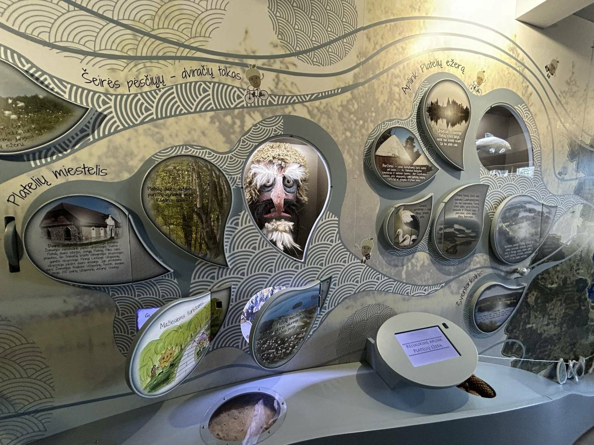 Pirmame Žemaitijos nacionalinio parko direkcijos (ŽNPD) Platelių lankytojų centro aukšte pristatoma ekspozicija „Keliaukime aplink Platelių ežerą“, kurioje galima susipažinti su Platelių ežeru (jo susiformavimu, dugno reljefu, povandeniniu pasauliu), vandens pramogomis, lankomomis parko vietomis, pažintiniais takais. Lankant ekspoziciją „Pasėrokoukem žemaitėškā“, galima pasimokyti žemaitiškų žodžių ir posakių. Antrame aukšte įrengta gamtos ekspozicija: paslaptingas miškas naktį ir dieną (su gyvūnais, augalais, grybais ir garsais), spalvinga pieva su drugeliais, vabalais, pelkė su bebro „namu“, vandens gyvūnais.