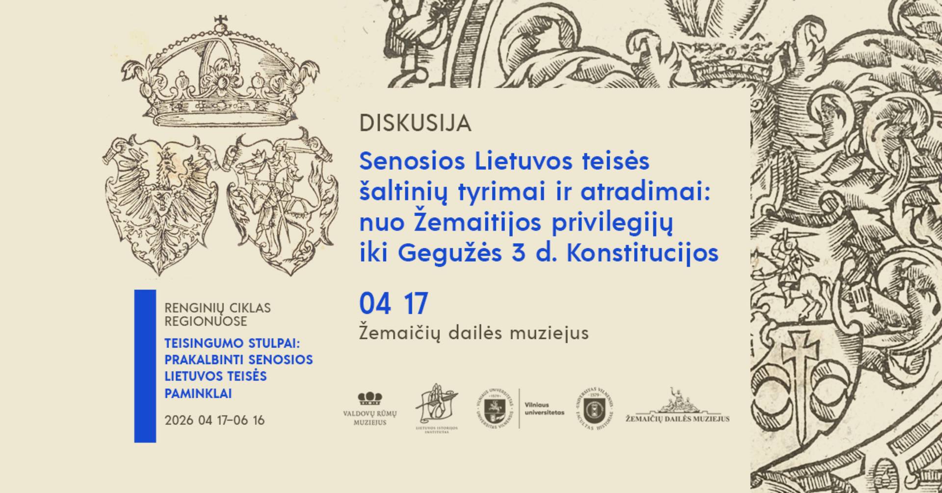 Nacionalinis muziejus Lietuvos Didžiosios Kunigaikštystės valdovų rūmai kartu su Žemaičių dailės muziejumi kviečia į susitikimą -diskusiją apie LDK teisės sistemą.