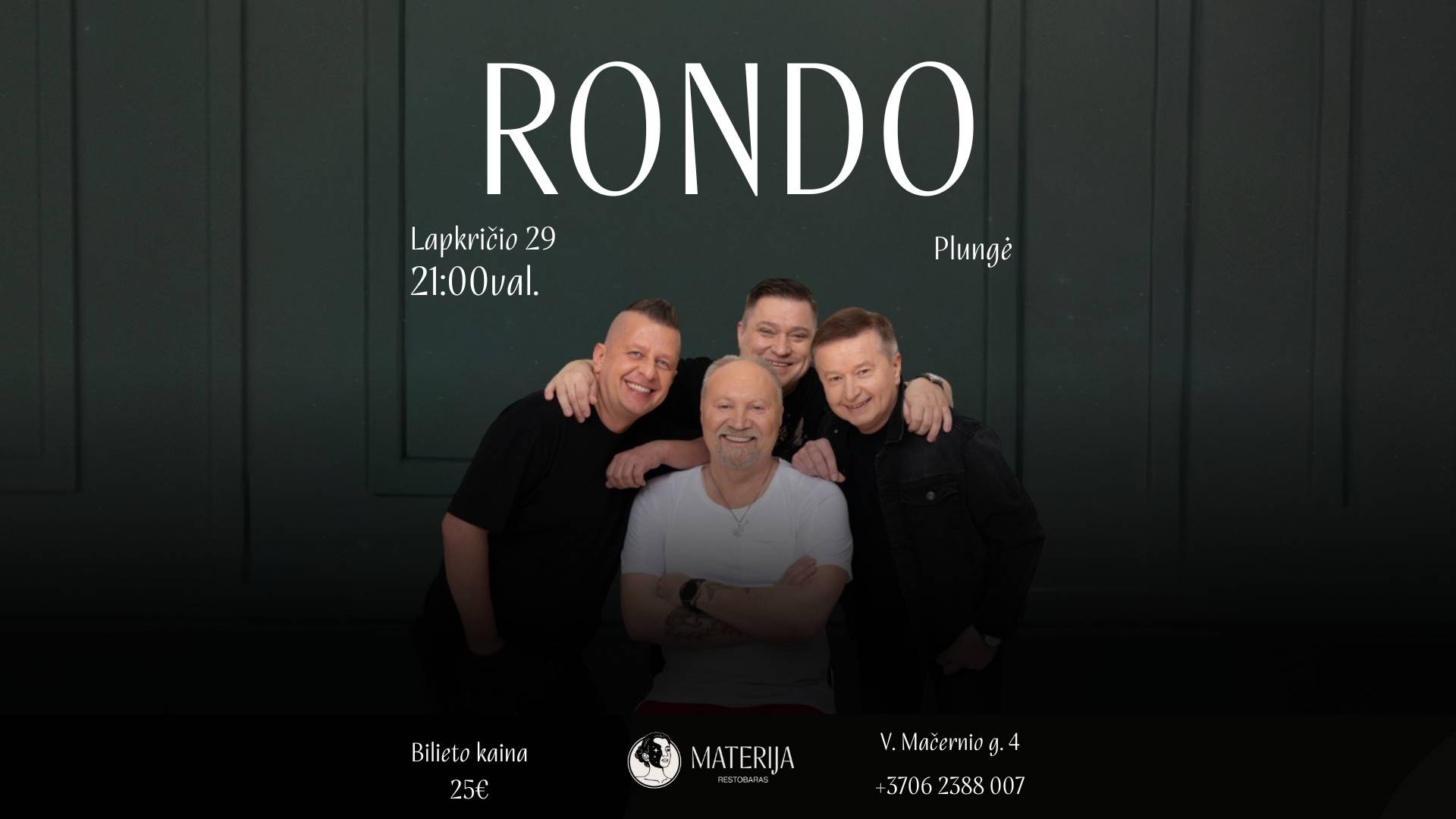 Legendinė grupė RONDO grįžta su visiems gerai žinomomis dainomis ir charizma.