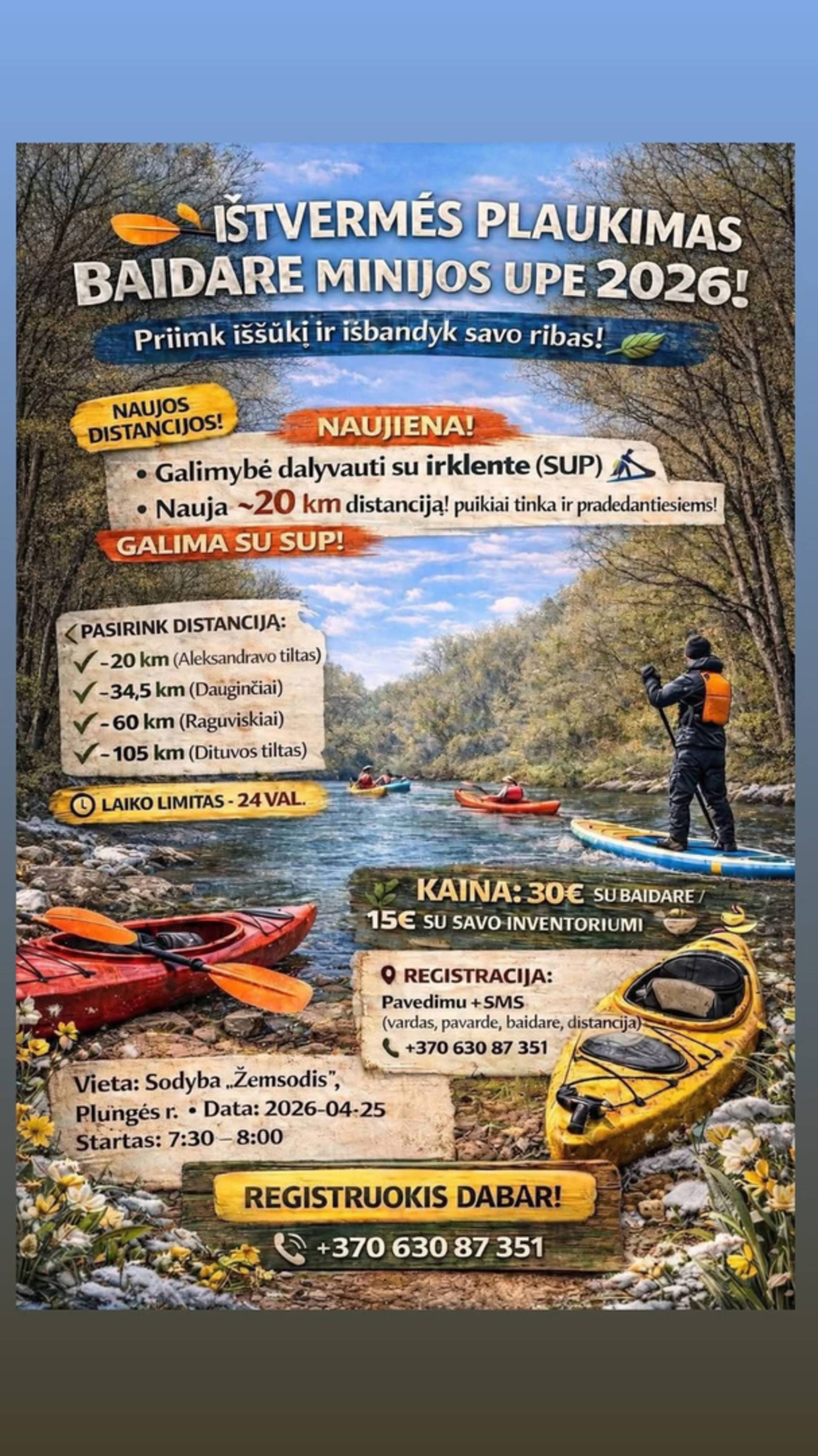 IŠTVERMĖS PLAUKIMAS BAIDARE MINIJOS UPE 2026!