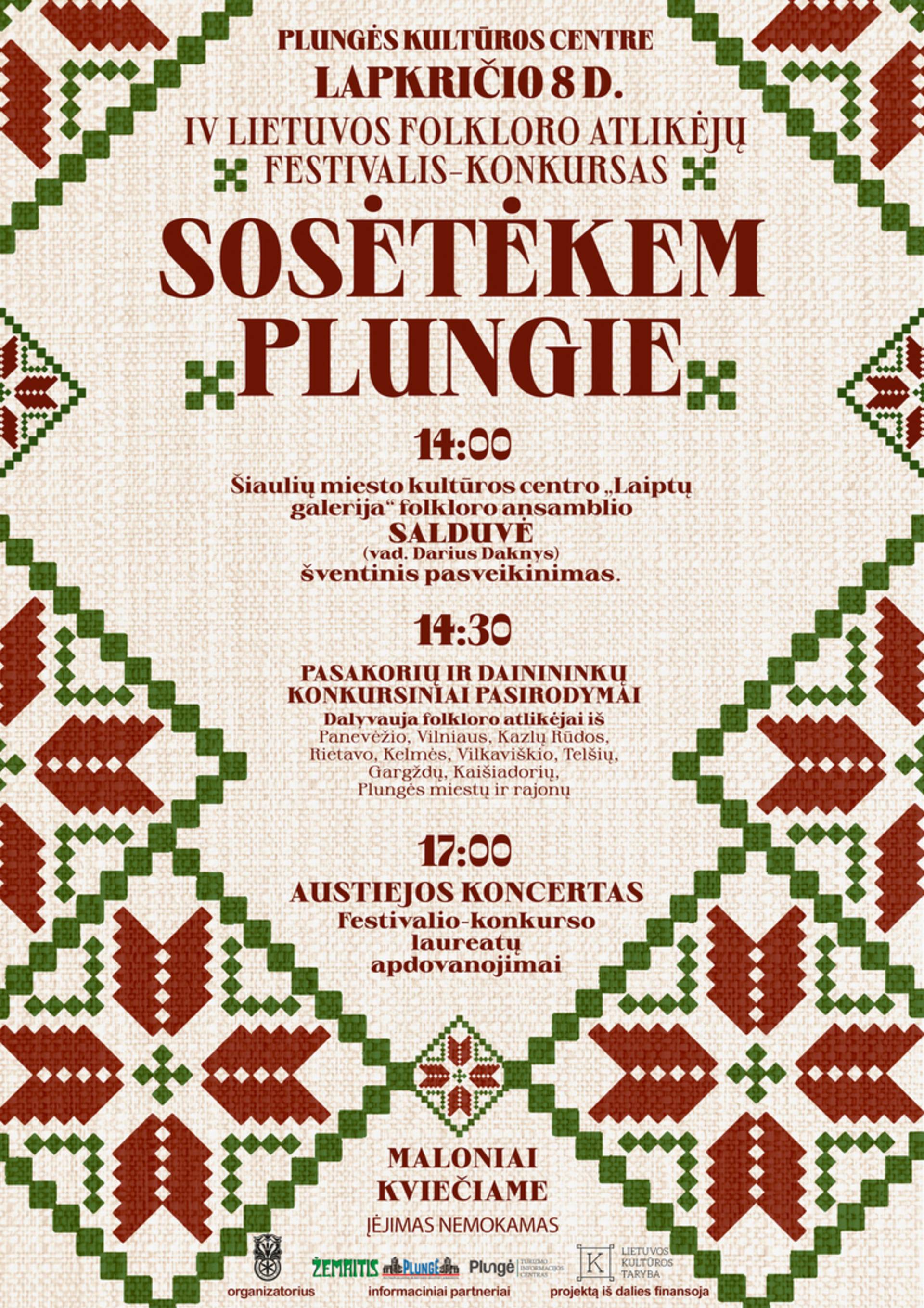 Ketvirtą kartą rengiamas Lietuvos folkloro atlikėjų festivalis-konkursas ,,Sosėtėkem Plungie“ spėjo užsitarnauti žinomumą ir gerą vardą Lietuvos folkloro atlikėjų bendruomenėje.