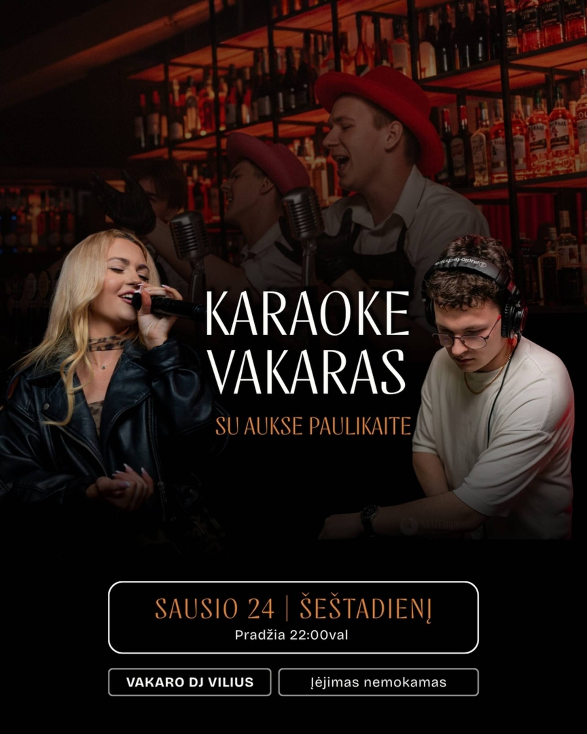 Sausio 24 d. (šeštadienį) 22:00 val. restobaras „Materija“ kviečia į karaokė vakarą! Auksė Paulikaitė - vakaro padrąsinimas. Įėjimas nemokamas. V. Mačernio g. 4, Plungė.