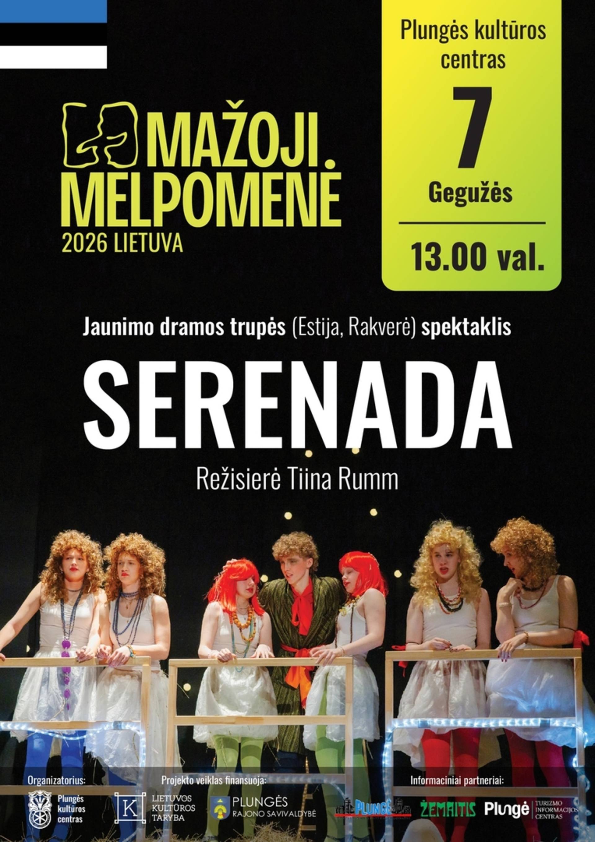 GEGUŽĖS 7 d. 13.00 val. Rakverės jaunimo dramos trupė (Estija, Rakverė) spektaklis „SERENADA“ (pagal Sławomiro Mrożeko pjesę). Režisierė Tiina Rumm. Spektaklio trukmė 60 min. Spektaklis bus rodomas estų kalba.