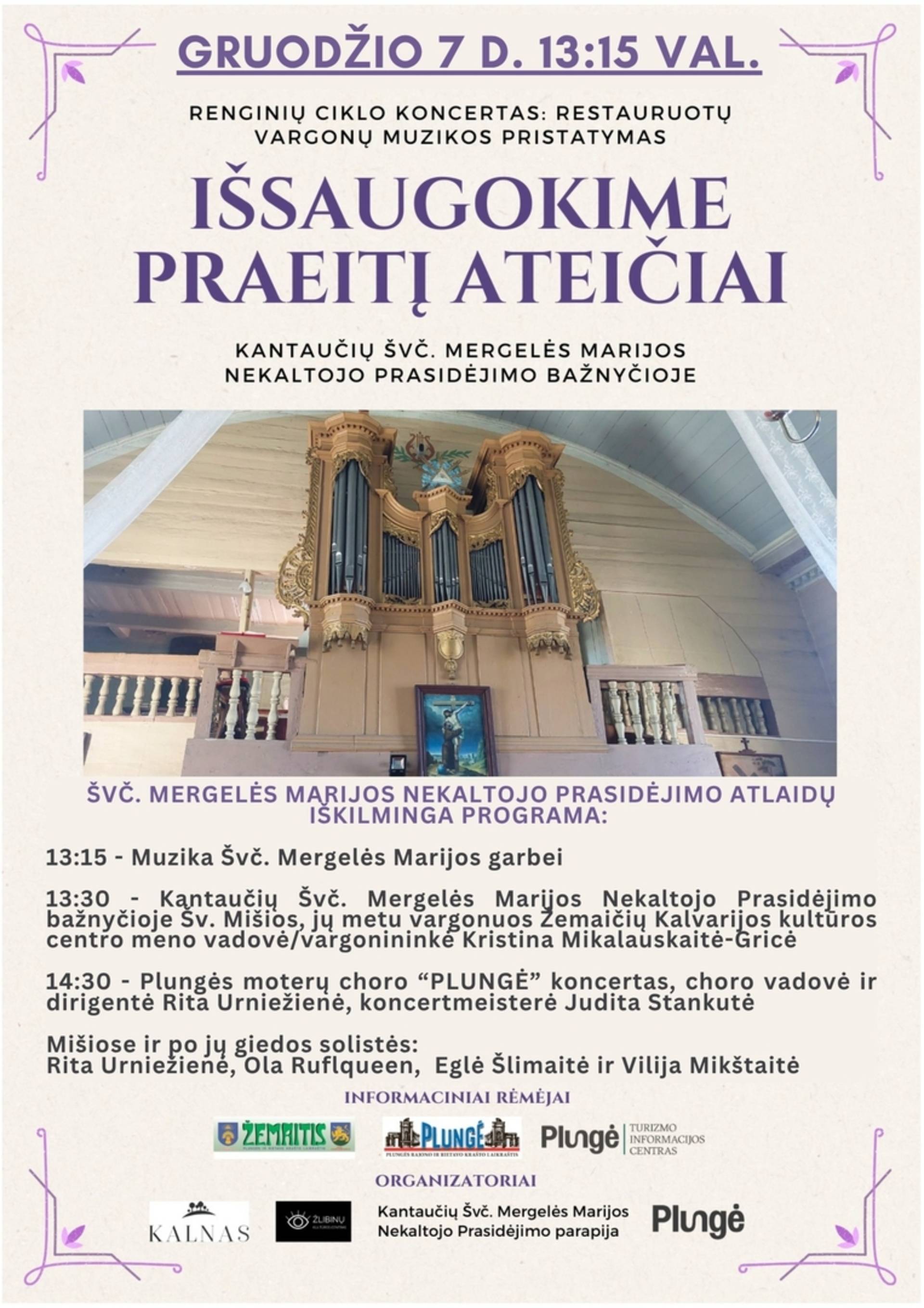 Renginių ciklo koncertas: Restauruotų vargonų muzikos pristatymas „Praeitį išsaugokime dabarčiai“